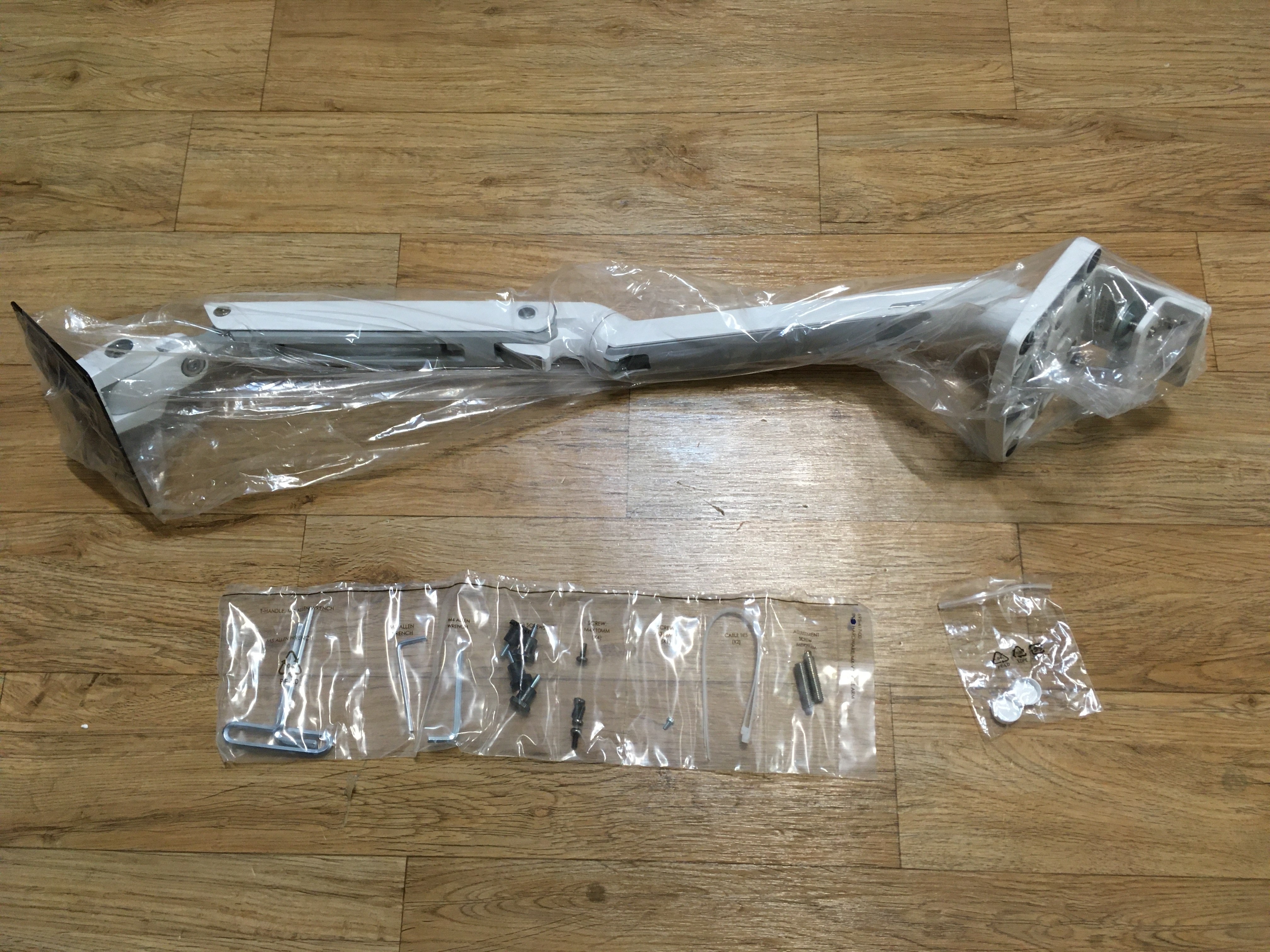 구성품은 요렇다. 부품들은 아무래도 다 쓰지는 않을 것 같고 나중에 필요할지도 몰라서, 육각렌치 처럼 필요한 부속만 비닐 윗부분 가운데를 세로로 1cm 정도 살짝 잘라서 입구(?)를 만든 다음 꺼내서 쓰고 다시 넣어뒀다.